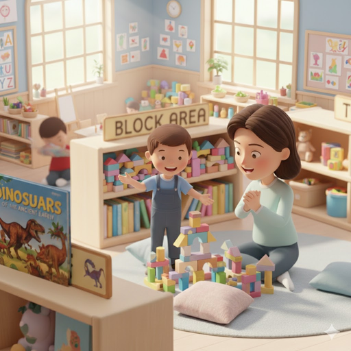 4. สภาพแวดล้อมที่ส่งเสริมภาษา การรู้หนังสือ และการสื่อสาร มักจะเต็มไปด้วยเสียงและความมีชีวิตชีวา เนื่องจากการพัฒนาทางภาษาเป็นกระบวนการแบบโต้ตอบ บรรยกาศที่เด็กได้พูดคุยอย่างอิสระเกี่ยวกับประสบการณ์ ความสนใจ หรือความต้องการของตนเอง